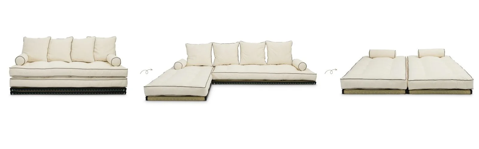 En agençant les éléments tatami, il crée un canapé d'angle bas, parfait pour la relaxation en journée.